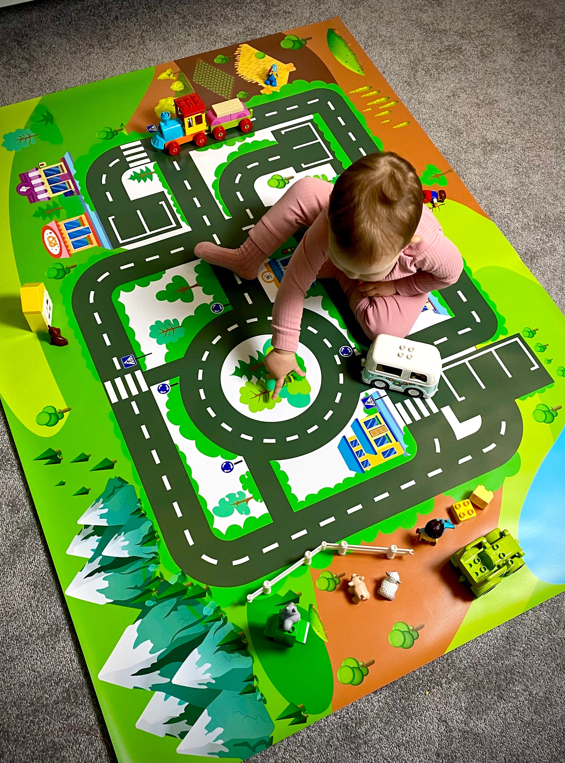 *klocki i inne zabawki przedstawione na macie nie wchodzą w skład produktu a są jedynie rekwizytami przedstawiającymi możliwości zabawy na macie